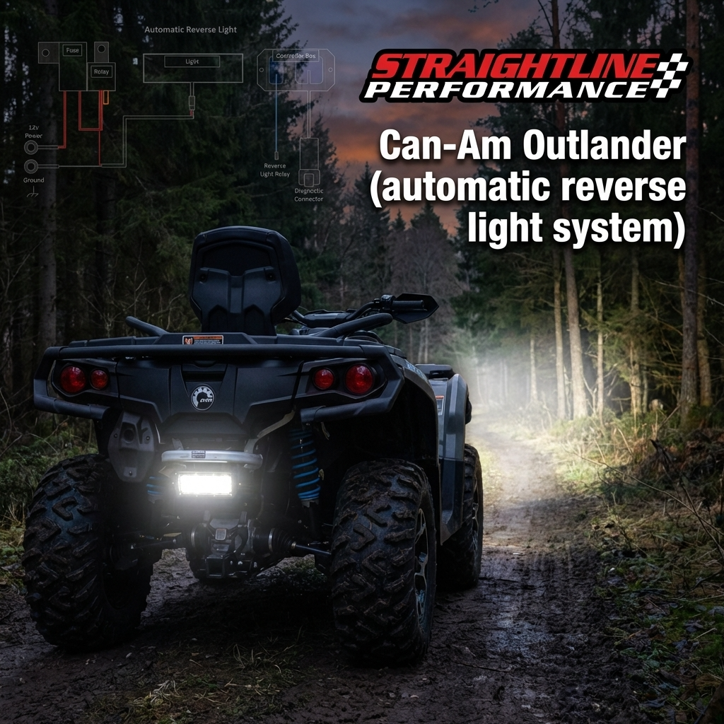 Straightline Performance introduces a revolutionary plug-and-play backup light system for Can-Am designed for maximum simplicity, precision, and reliability. Unlike traditional aftermarket lighting systems that require splicing wires, drilling switches, and complex installation, our system connects directly into the vehicle’s diagnostic CAN port. This innovative design allows the controller to automatically read ECU signals and turn on the reverse lights the moment the vehicle is shifted into reverse—no extra steps, no manual switches, no hassle.