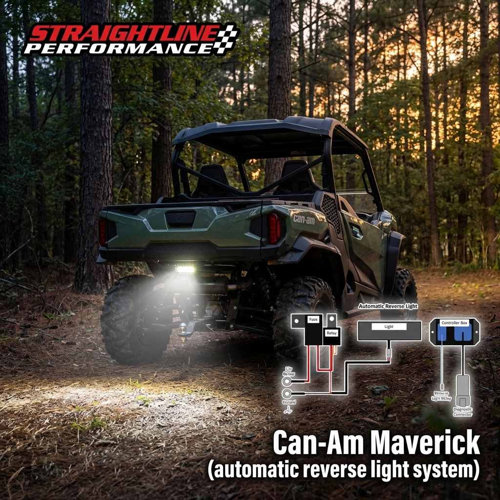 Straightline Performance introduces a revolutionary plug-and-play backup light system designed for maximum simplicity, precision, and reliability. Unlike traditional aftermarket lighting systems that require splicing wires, drilling switches, and complex installation, our system connects directly into the vehicle’s diagnostic CAN port. This innovative design allows the controller to automatically read ECU signals and turn on the reverse lights the moment the vehicle is shifted into reverse—no extra steps, no manual switches, no hassle.
