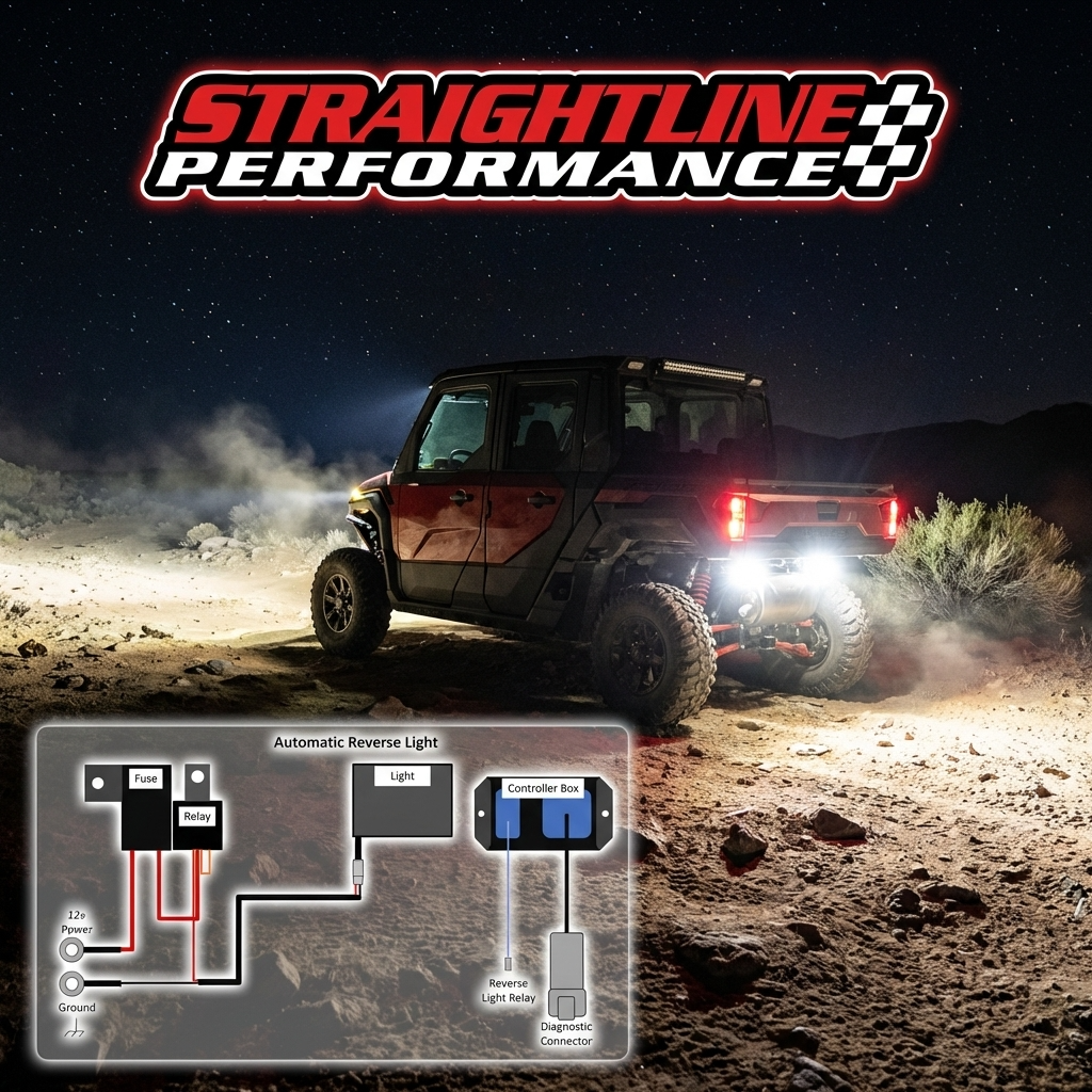 Straightline Performance introduces a revolutionary plug-and-play backup light system designed for maximum simplicity, precision, and reliability. Unlike traditional aftermarket lighting systems that require splicing wires, drilling switches, and complex installation, our system connects directly into the vehicle’s diagnostic CAN port. This innovative design allows the controller to automatically read ECU signals and turn on the reverse lights the moment the vehicle is shifted into reverse—no extra steps, no manual switches, no hassle.